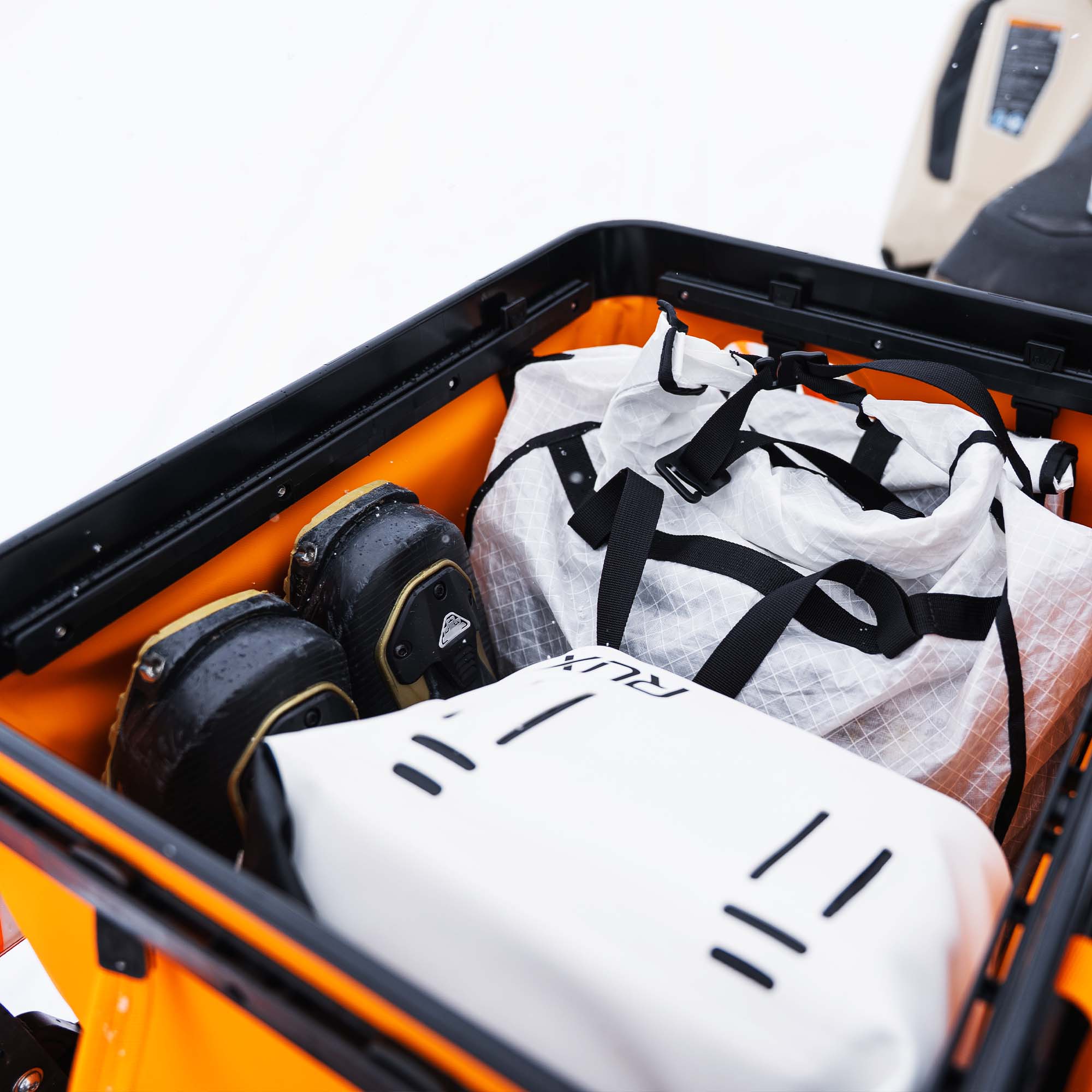 RUX was built around wide-mouth access, visual organization, and modular packing so you can spot and grab what you need without digging. This bundle extends that same system onto your sled. Segment gear with the RUX packing system, isolate food in a RUX Cooler Cube, and expand further with organization panels and external RUX pockets. It’s a smarter way to carry more.